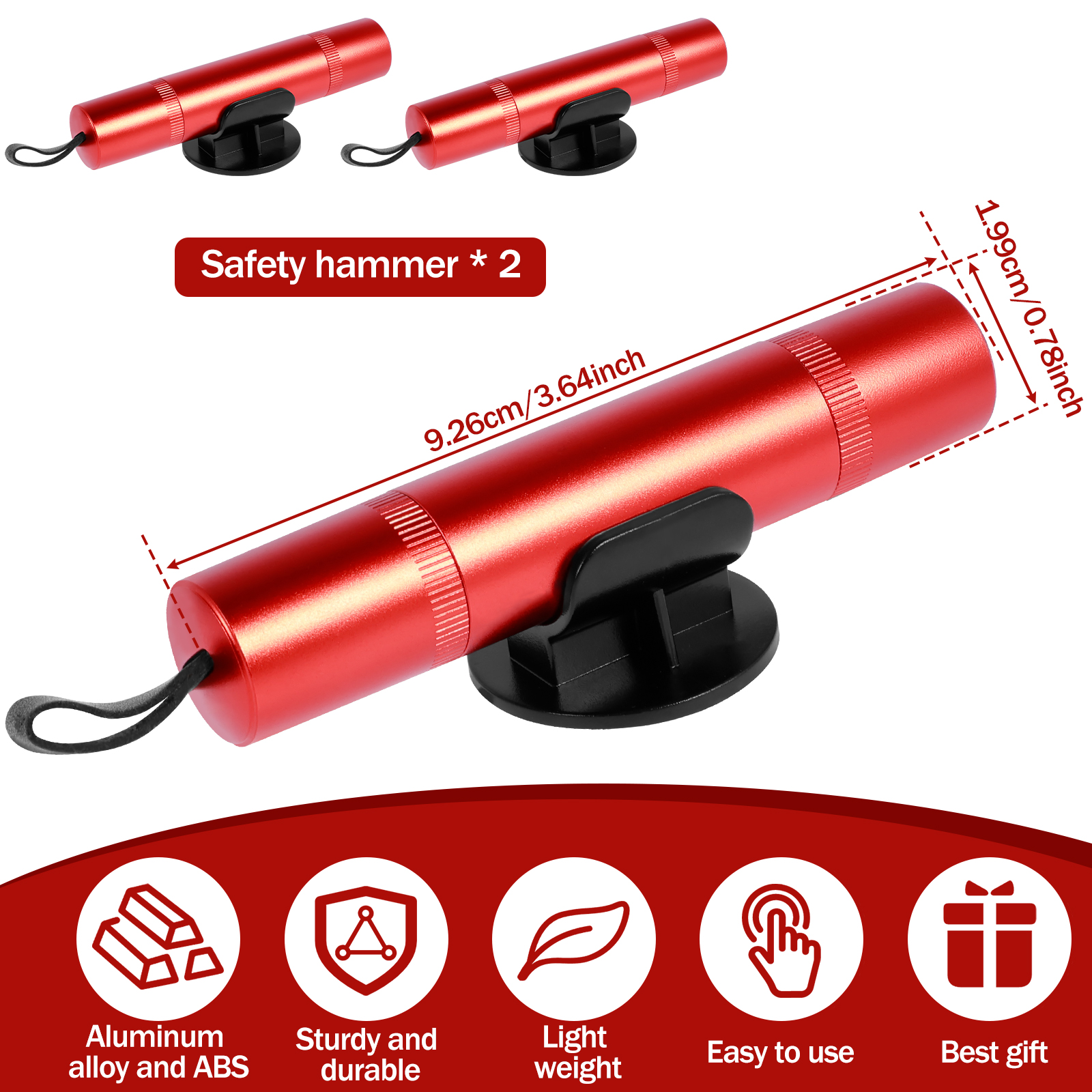 [Lightweight and Durable] The car safety hammer is made of high quality aluminium alloy and ABS, durable, lightweight and powerful. Packed with 2 safety hammers, one for the front and one for the back, stick it in the car for more safety