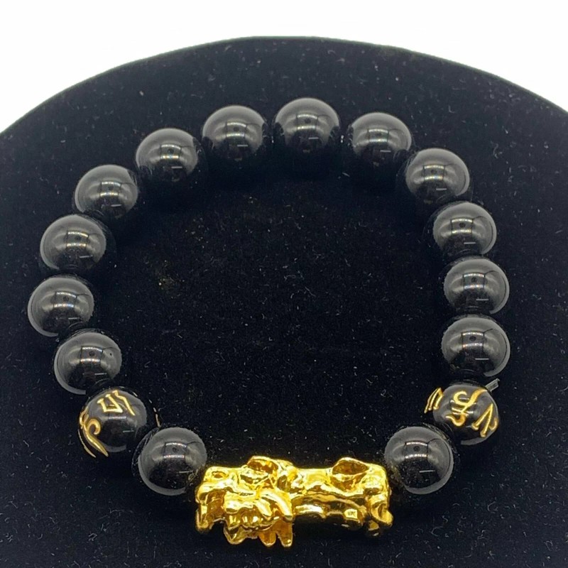 Unbranded 2pcs Feng shui Luck Black Bead Bracelet Golden Pi Xiu/Pi Yao Nice Gift Bracelet