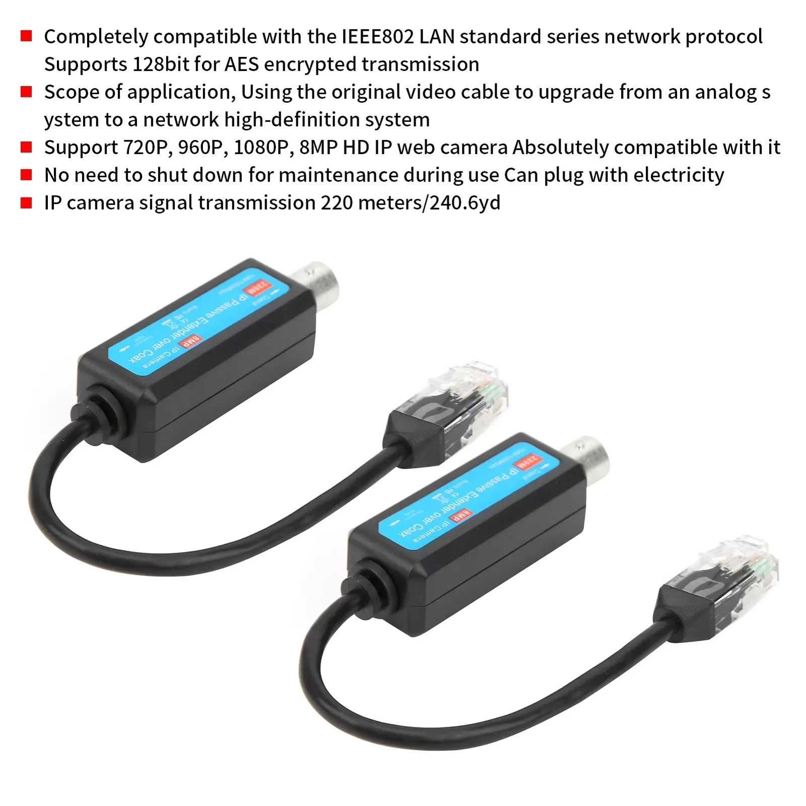 Unbranded 2PCS High Quality Passive Coaxial lP Extender lEEE802.3 RJ45 PAL/NTSC/SECAM