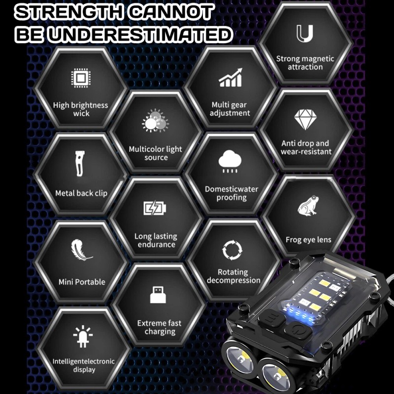 Right click: Side light 4*COB strong light - Side light 4*COB low light -LED red bright -LED red blue flash