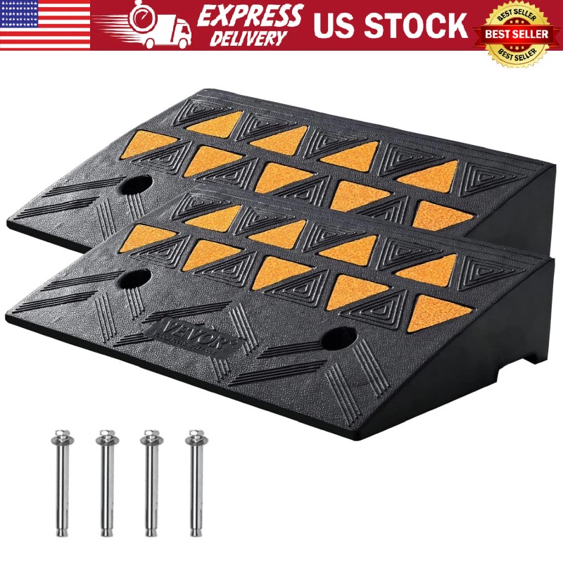 Unbranded 2PCS Rubber Curb Ramp 4.1" Rise Heavy Duty 33000lbs Car Ramps Driveway Curb Ramp