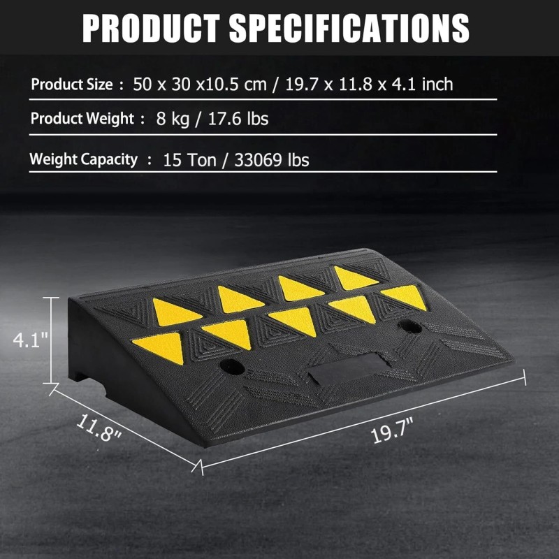 - 【Sturdy & Durable Construction】Made from high-quality rubber, our curb ramp is abrasion-resistant, UV-resistant, and cold-resistant, ensuring longevity and reliable performance. With a remarkable weight capacity of 15 tons (33,000 lbs), this ramp is designed to handle heavy vehicles with ease.