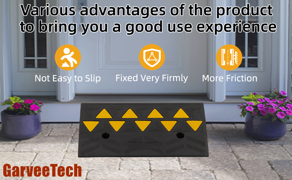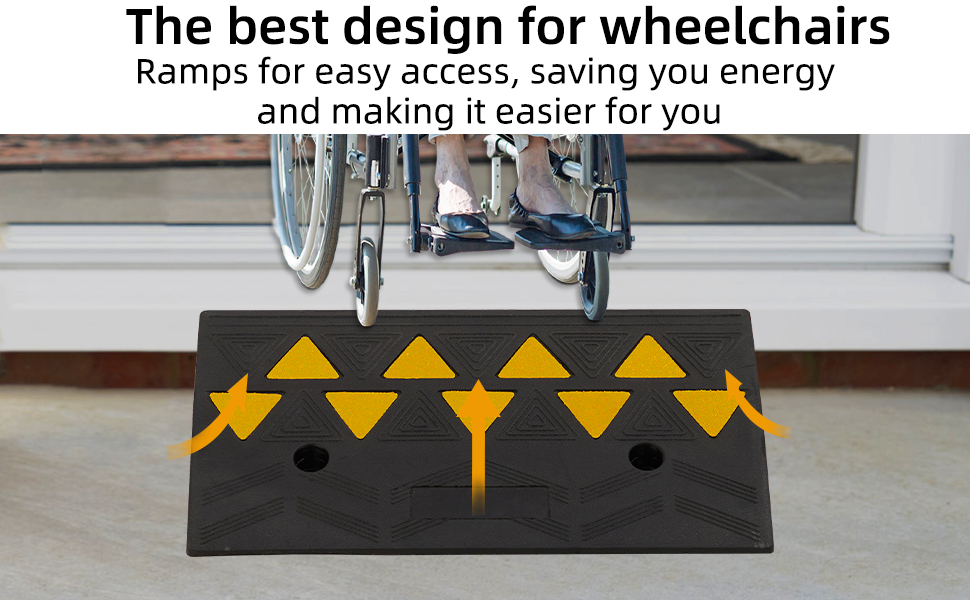 - 【Enhanced Safety Features】Equipped with a reflective yellow safety stripe, this ramp improves visibility in low light conditions. The high-traction textured surface provides superior grip, minimizing the risk of skidding even in wet or icy weather, ensuring safety for all users.