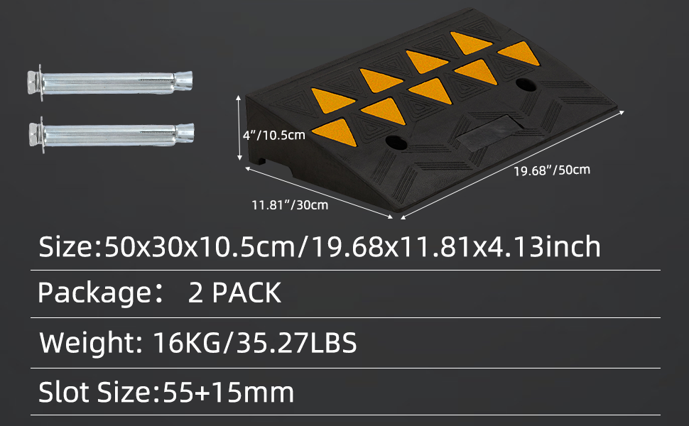- 【Product Dimensions & Design】Measuring 19.68'' in length, 11.81'' in width, and 4'' in height, this heavy-duty curb ramp weighs 16.5 lbs. It features a built-in channel for cable protection and effective water drainage. Sold as a single ramp, it’s perfect for various applications.