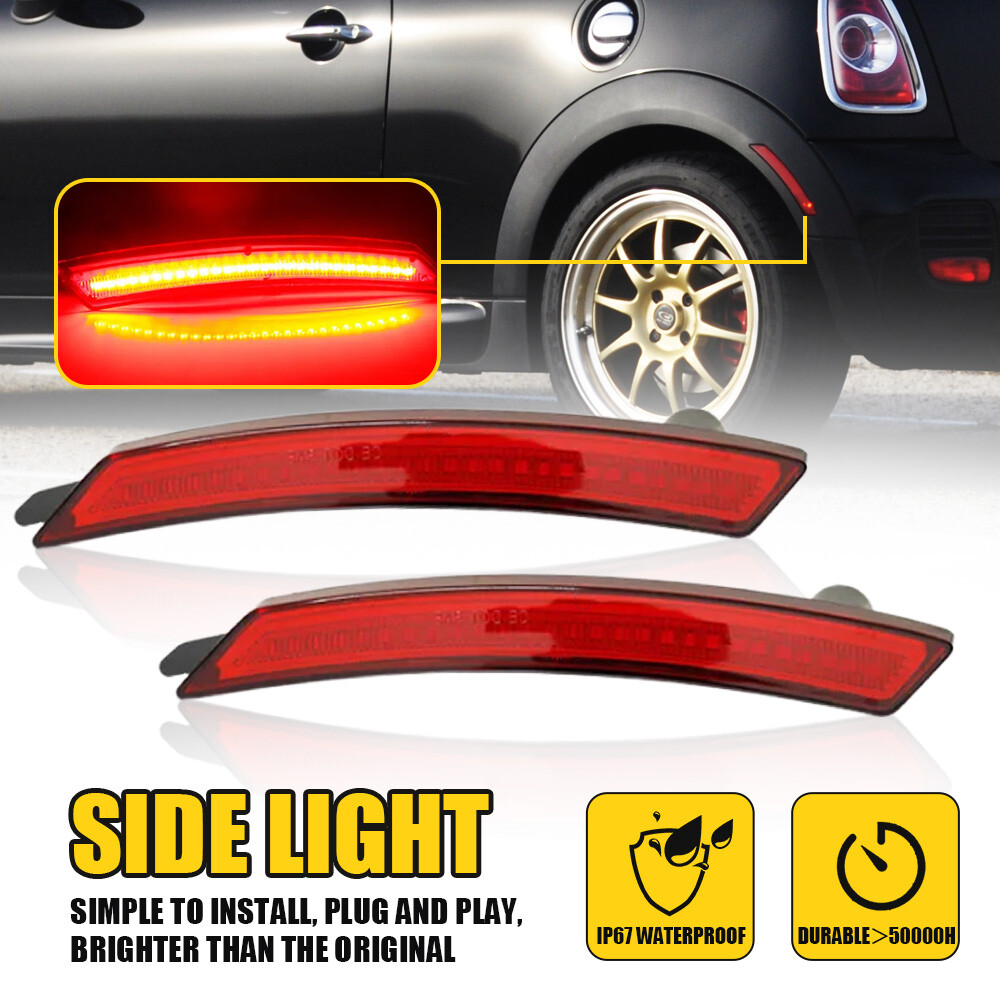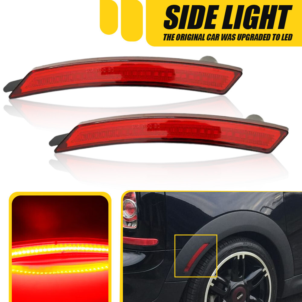 2PCS/Set For Mini 2007-2016 Cooper Red Full Rear LED Side Marker Lights