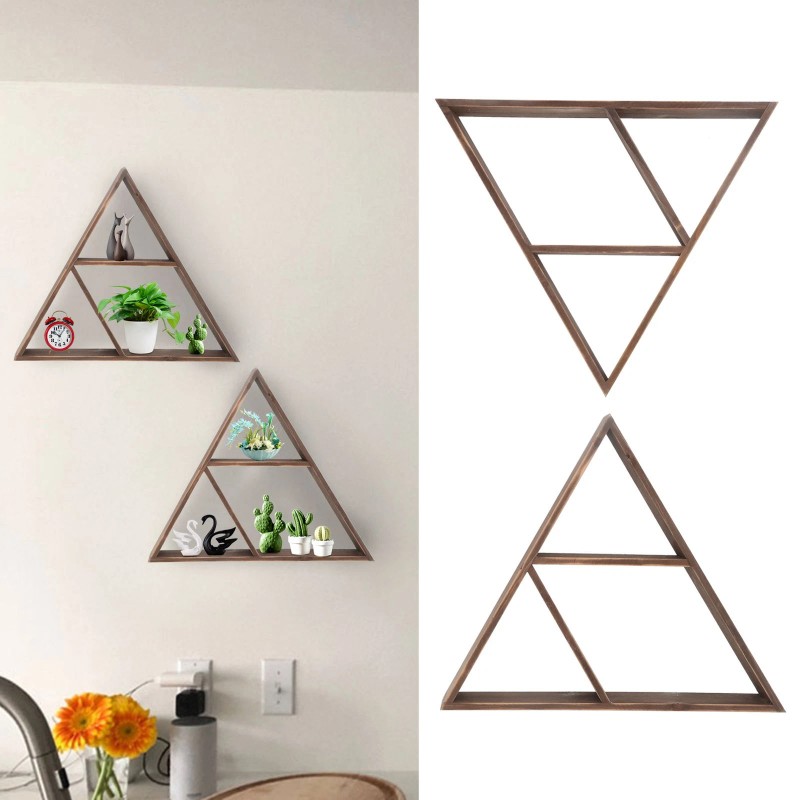 Unbranded 2pcs Triangular Wall Mounted Display Rack Wooden Floating Bookshelf For Home