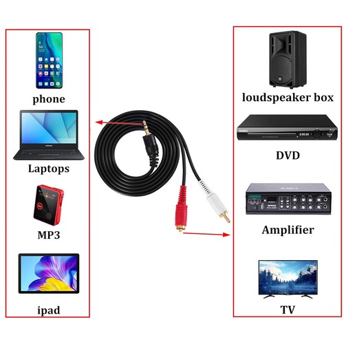 Male to Male: 3.5mm to 2 RCA stereo cable is suitable for plugging the 3.5mm connector into the headphone jack of your mobile device and the 2 RCA connector to the port on your sound system.
