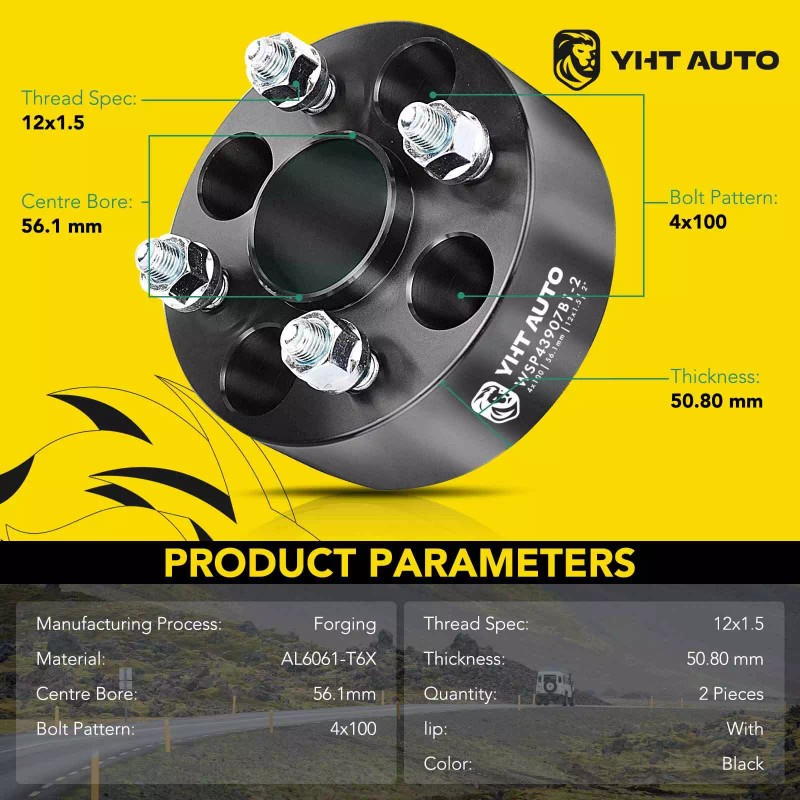 Note-2: PCD: 4x100mm, Thread Size: M12x1.5, Spacer Thickness: 2", Bore Size: 56.1mm, 12.9 Grade Studs