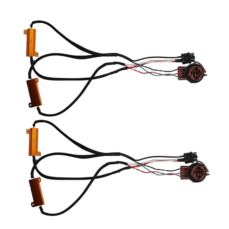 One Pair(2 pieces) load resistors for 3157 Switchback led bulbs with wire adapters Build-In with 50W 6-Ohm Double Load Resistors Solve error message on dash board and headlight flickering issue Cross reference: 3157 3357 3457AK, 3357ALL, 4114K, 3157X, 3057KLCP, 3757AK Voltages: 12V, Wattage: 50W Easy Installation , No mechanic require.