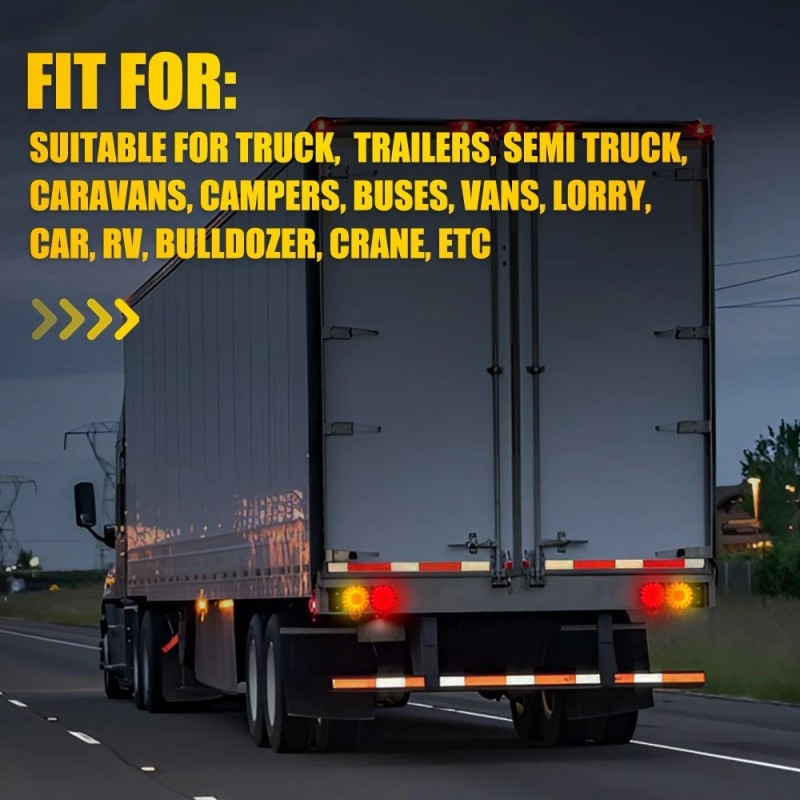 This pair of LED tail lights can be used in truck, trailers, semi truck, caravans, campers, buses, vans, lorry, car, RV, bulldozer, crane, etc. It also can be used as brake light, daytime running light, tail light, turn signal light, etc.