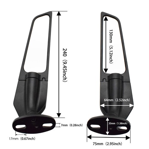 Unbranded 2× Side Mirrors Fit For Yamaha YZF R1 R3 R6 Rearview Wind Wing Mirror Adjustable