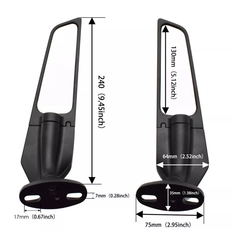 Motorcycle Wind Swivel Stealth Wing Rear View Side Mirror Set For Yamaha Honda