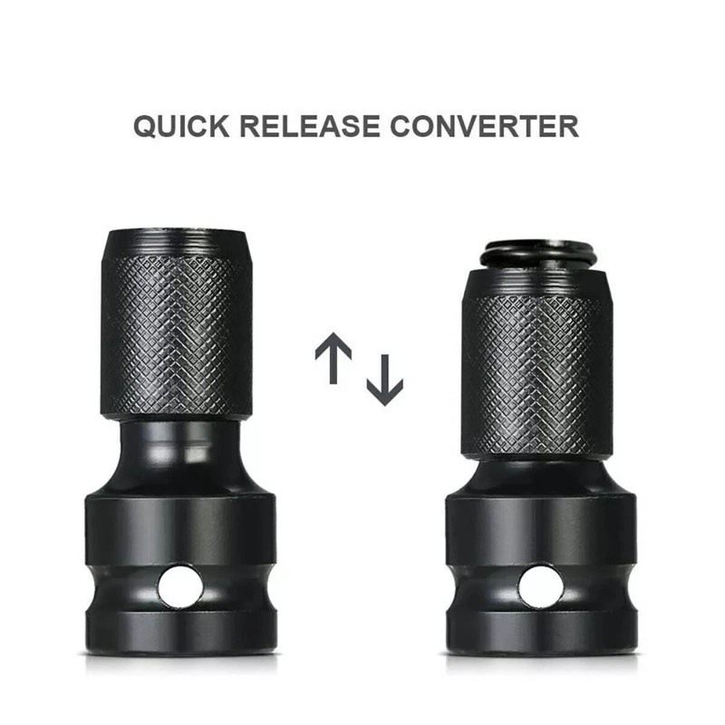 Quick Release Design: 1/2" square female to 1/4" Hex female socket adapter.