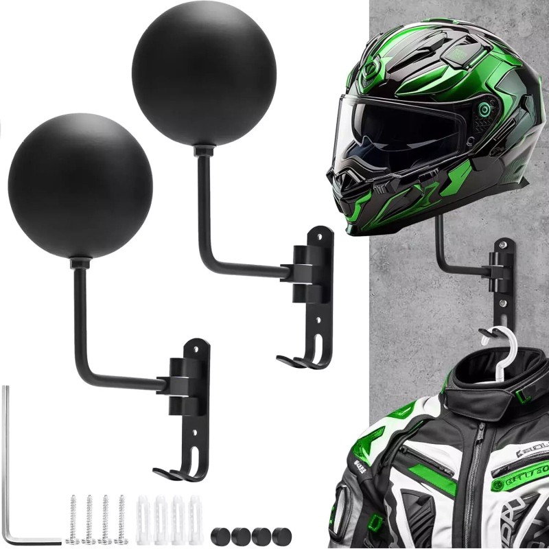 【Improved Space Utilization】 The helmet hanger can be adjusted 180° as needed, and the double-hook design stores coats, jackets, keys, backpacks and other items, making it look more clean and tidy