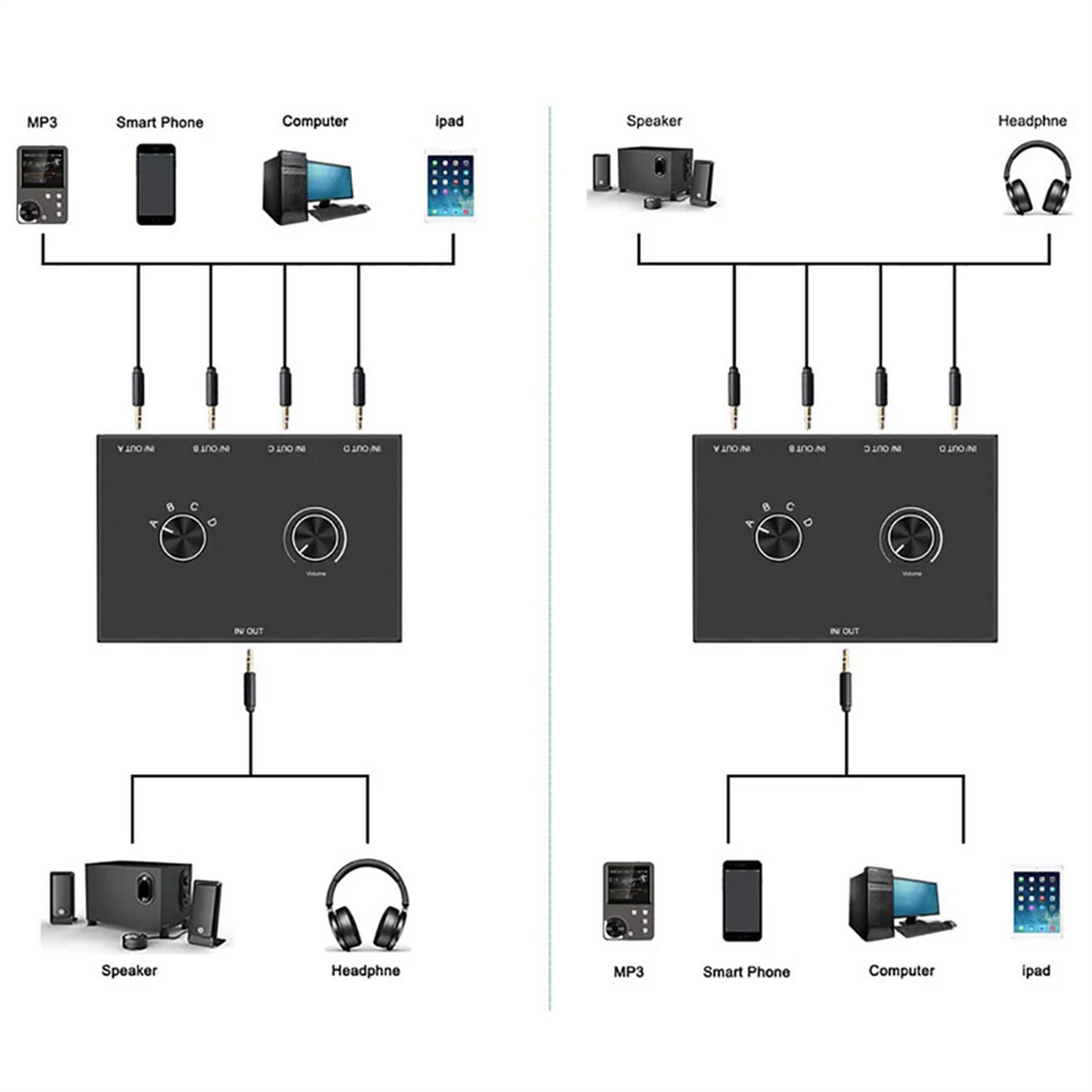 Unbranded 3.5mm Jack Audio Switcher Stereo Bi-Directional 4 in 1 out / 4 in ...