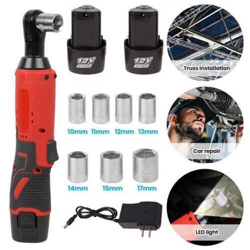Unbranded 3/8'' Cordless Ratchet Right Angle Wrench 12V Impact Power Tool 2 Battery