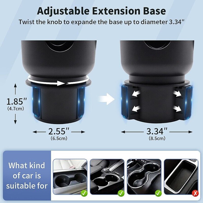 **2.Versatile Placement: The adjustable bottom allows for a versatile fit for any cup holder, while preventing bumps during installation and wall interference.**
