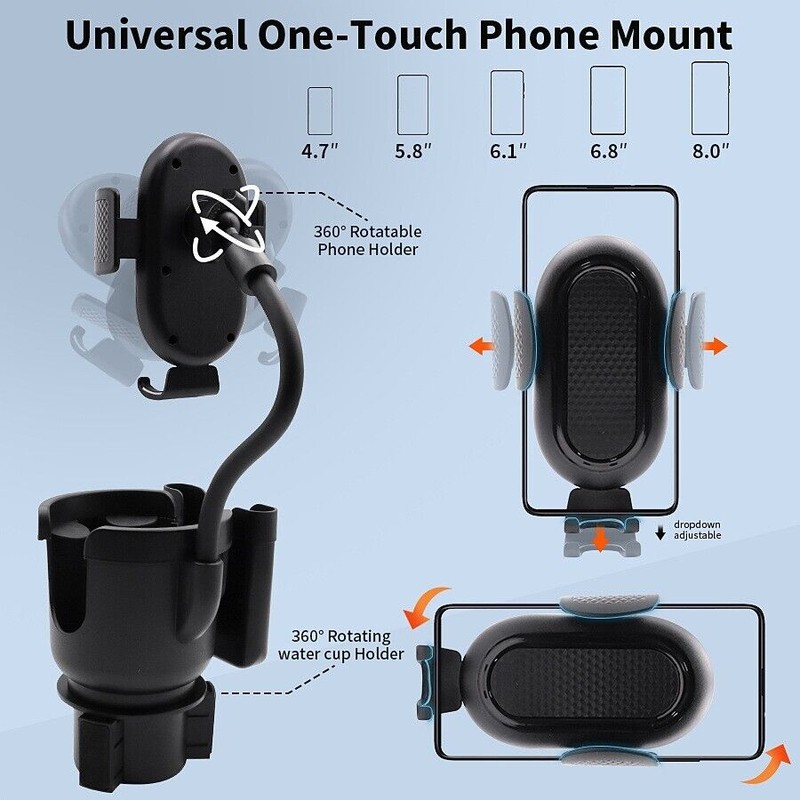**1.Flexible Neck: Our car phone holder cup holder allows for multi-angle adjustments and can be rotated 360 degrees, making it easy to find the perfect viewing position for navigation and calls while driving.**