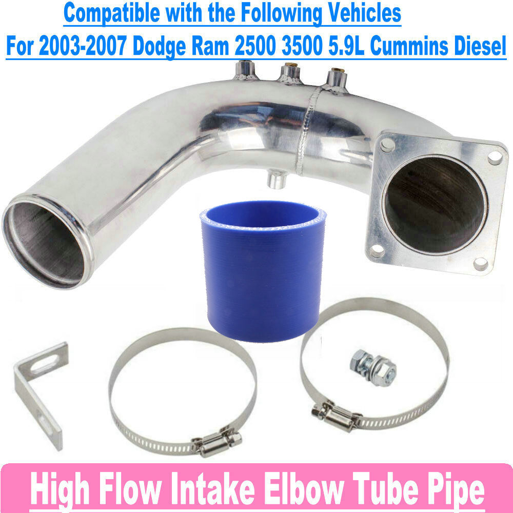 Silver High Flow Intake Elbow Tube Pipe For 2003-2007 Dodge Ram 5.9L Cummins