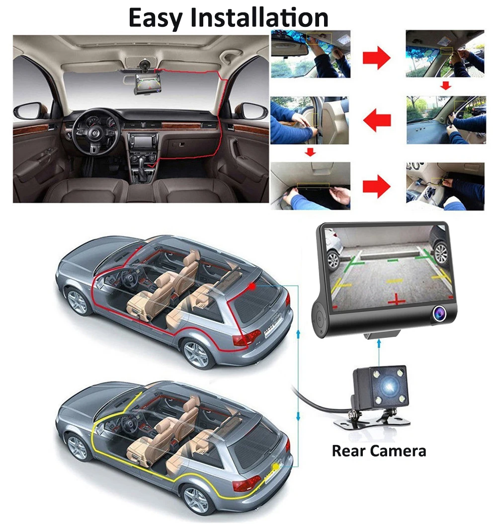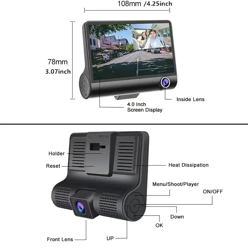- Features: 3 Lens,Wide Angle,G-sensor,Night Vision,24 hours parking