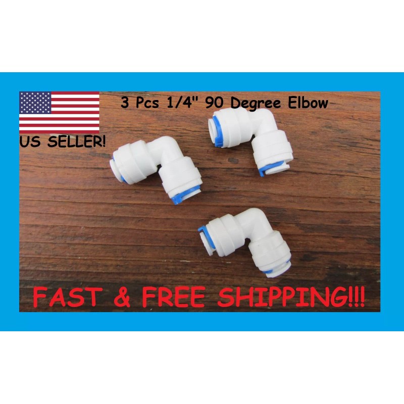 3 Pcs 1/4" x 1/4" Elbow 90 Quick Connect Fitting for RO Water System.