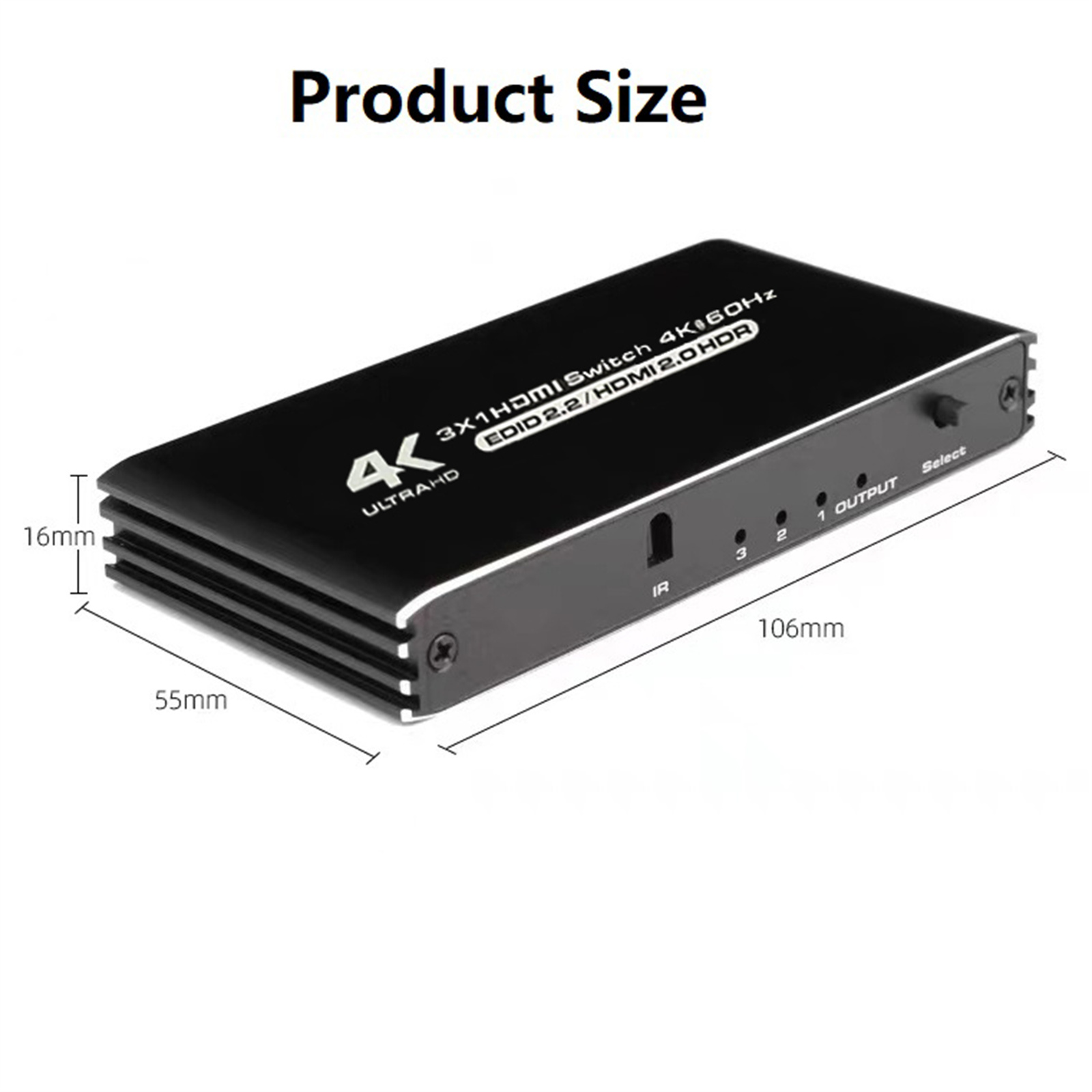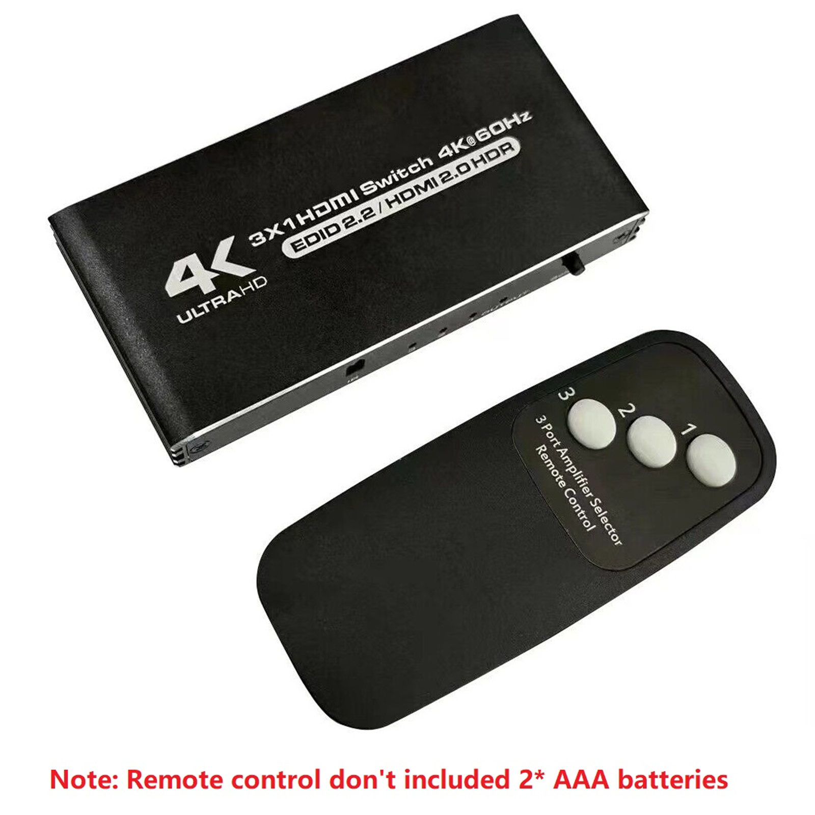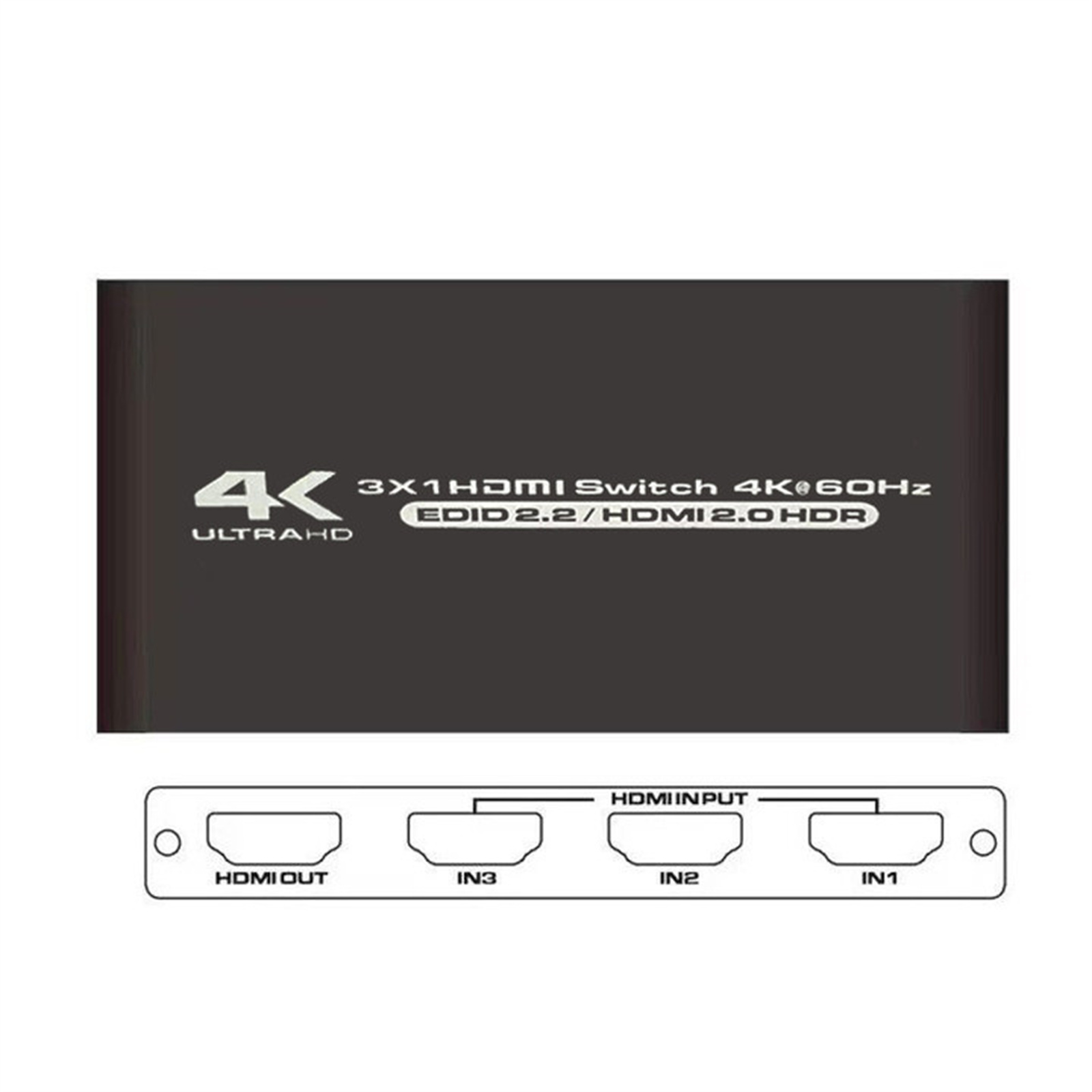 Unbranded 3-Port 4K HDMI Switcher 3x1 with IR Remote, Up to UHD 4K-3 In X 1 Out
