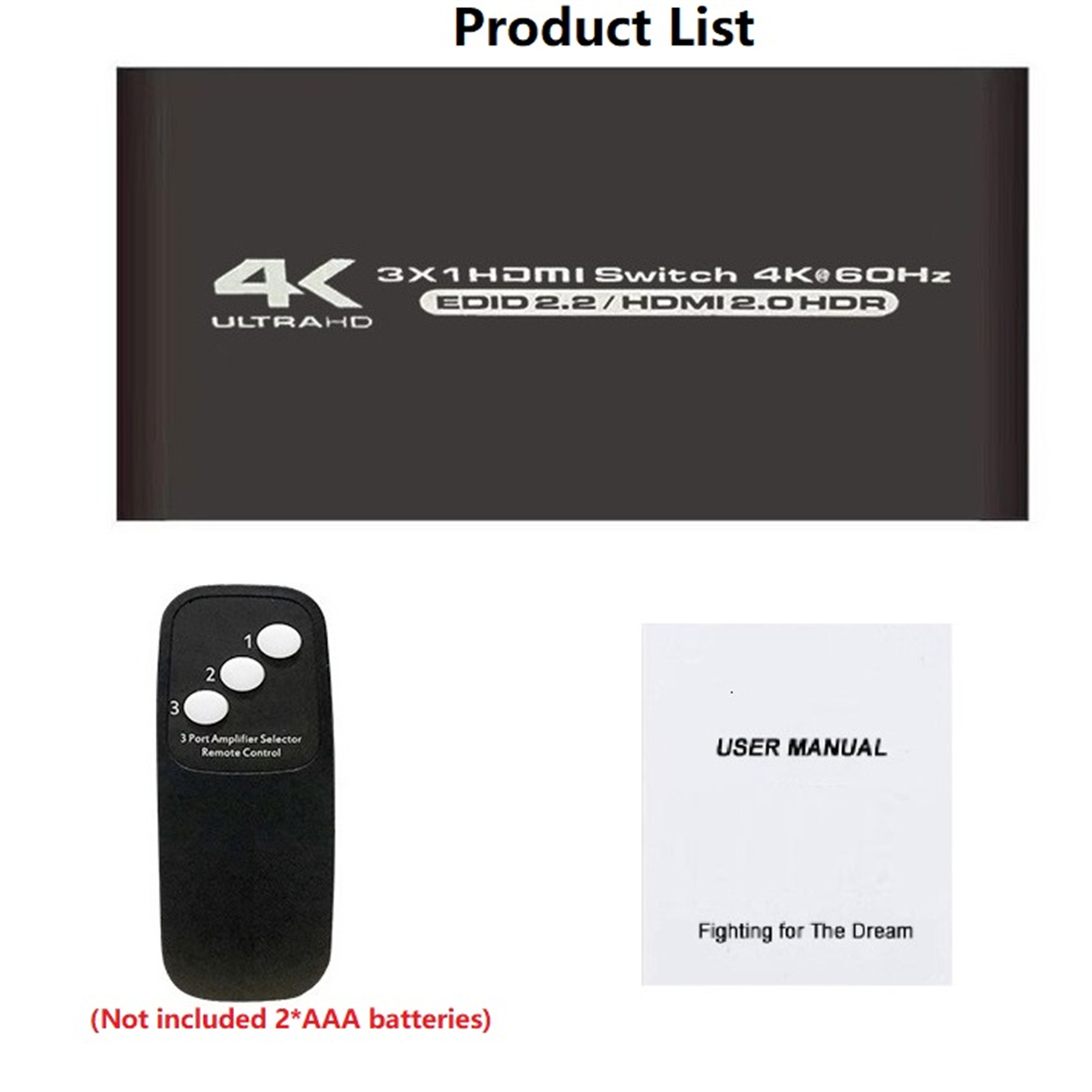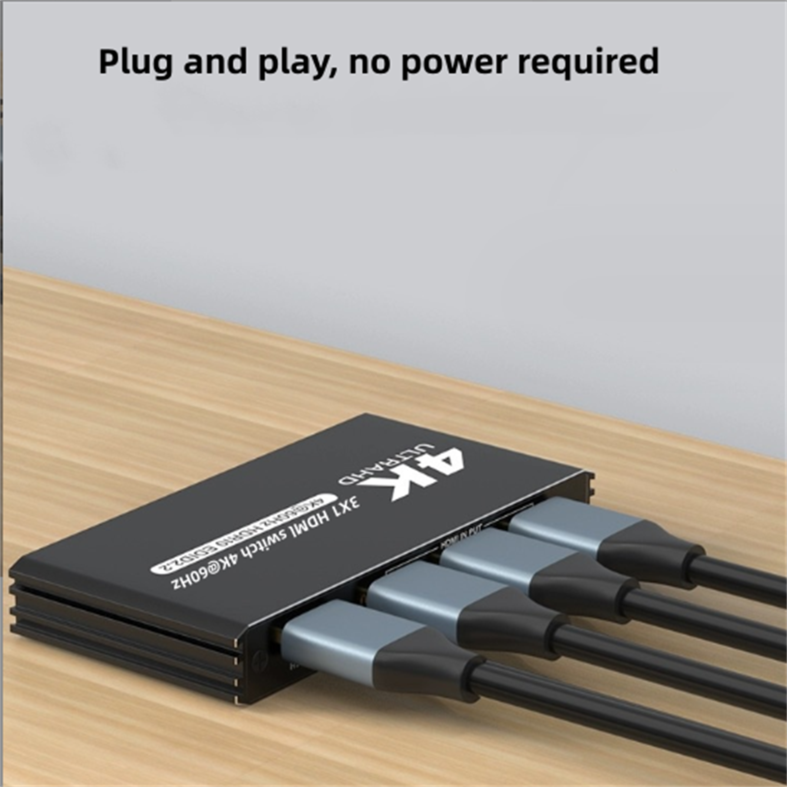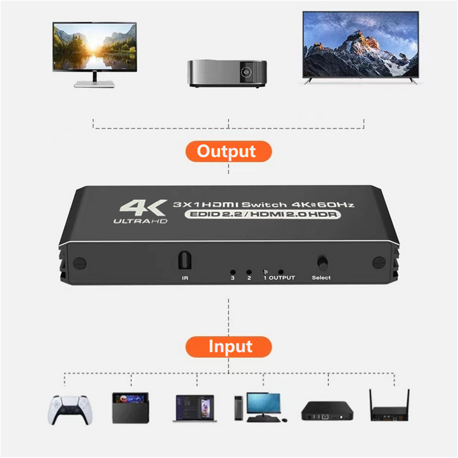 Unbranded 3-Port 4K HDMI Switcher 3x1 with IR Remote, Up to UHD 4K-3 In X 1 Out