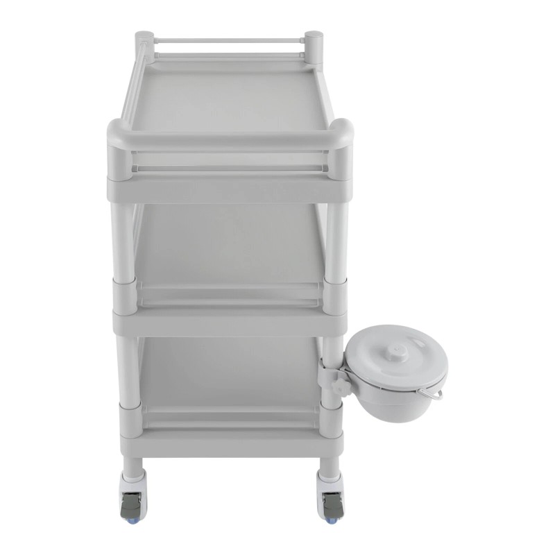 Application It can be widely used in hospitals, beauty salons, spas, pet shops, clinics, nail shops, orthopedic hospitals, health centers, dental clinics, etc. for storing beauty instruments, beauty tools, and medical instruments. It can also be used in classrooms, laboratories, offices, bedrooms, living rooms, etc. to store books, snacks, materials, small objects, sundries, and so on. It is favored by medical staff, nurses, personal families, healthcare professionals, beauticians, pet groomers, and manicurists who need to move swiftly between rooms.   Specifications Color: Grey Material: ABS Shape: Rectangular Style: Modern Process: Injection Molding Assembly Required: Yes Mount Type: Floor Mount Wheel Type: 4* Universal Wheels (2 With Brakes) Max. Load-bearing Capacity: 80kg/