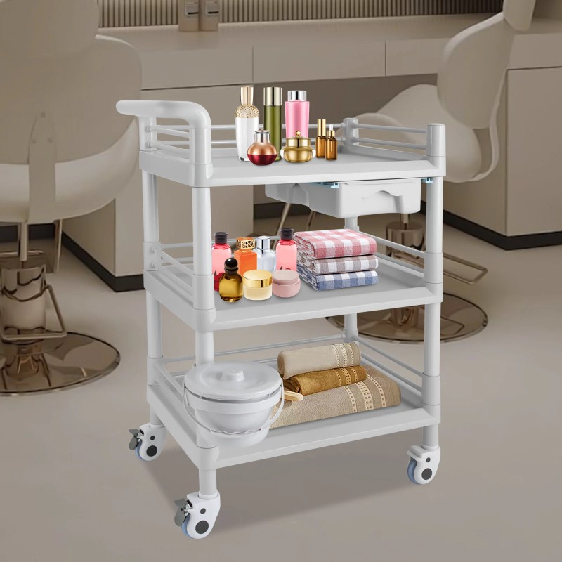 3-tier Beauty Salon Cart Beauty Instrument Cart Rolling Tool Cart with 4 Wheels