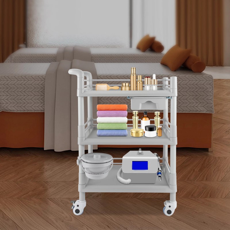 It can be widely used in hospitals, beauty salons, spas, pet shops, clinics, nail shops, orthopedic hospitals, health centers, dental clinics, etc. for storing beauty instruments, beauty tools, and medical instruments. It can also be used in classrooms, laboratories, offices, bedrooms, living rooms, etc. to store books, snacks, materials, small objects, sundries, and so on. It is favored by medical staff, nurses, personal families, healthcare professionals, beauticians, pet groomers, and manicurists who need to move swiftly between rooms.