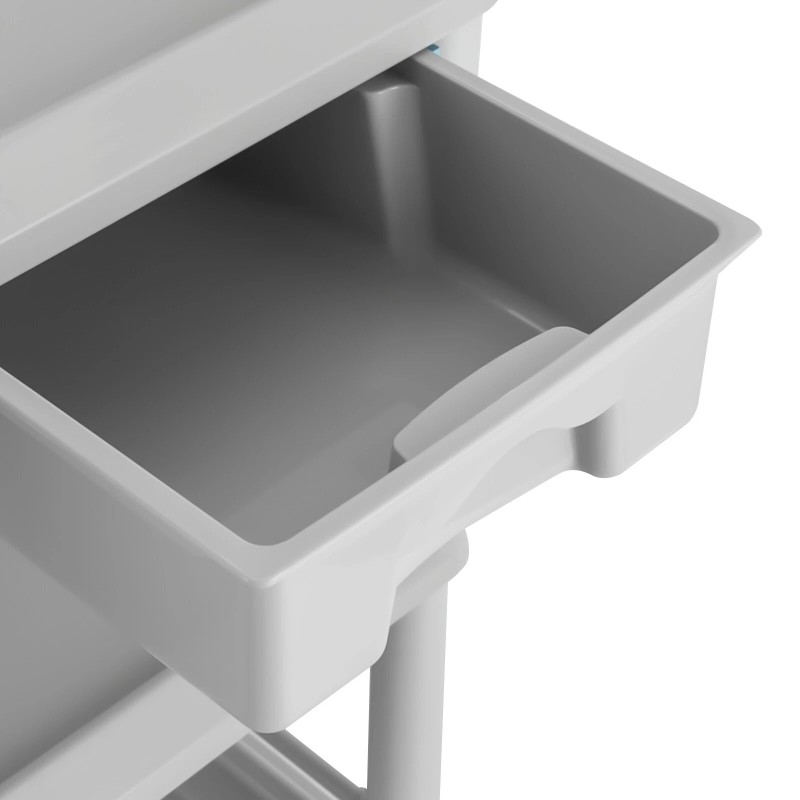 Application It can be widely used in hospitals, beauty salons, spas, pet shops, clinics, nail shops, orthopedic hospitals, health centers, dental clinics, etc. for storing beauty instruments, beauty tools, and medical instruments. It can also be used in classrooms, laboratories, offices, bedrooms, living rooms, etc. to store books, snacks, materials, small objects, sundries, and so on. It is favored by medical staff, nurses, personal families, healthcare professionals, beauticians, pet groomers, and manicurists who need to move swiftly between rooms.   Specifications Color: Grey Material: ABS Shape: Rectangular Style: Modern Process: Injection Molding Assembly Required: Yes Mount Type: Floor Mount Wheel Type: 4* Universal Wheels (2 With Brakes) Max. Load-bearing Capacity: 80kg/