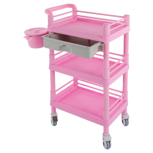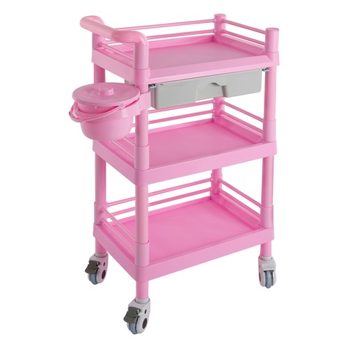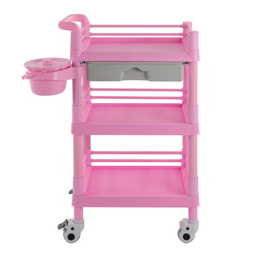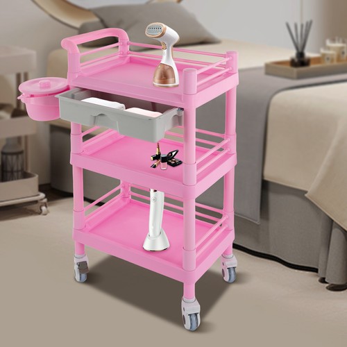 3 Tier Salon Hair Storage Trolley Movable Beauty Cart Rack W/ Drawer Office Pink