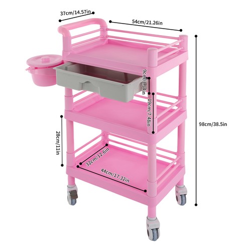 Unbranded 3 Tier Salon Hair Storage Trolley Movable Beauty Cart Rack W/ Drawer Office Pink