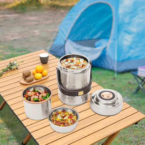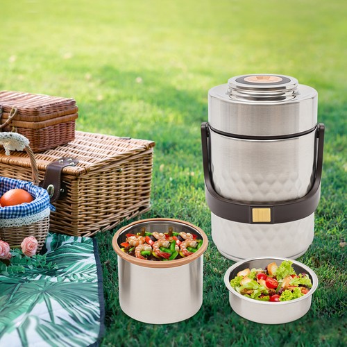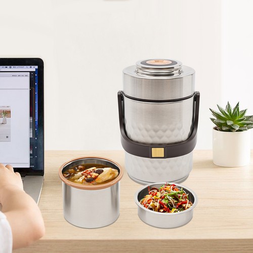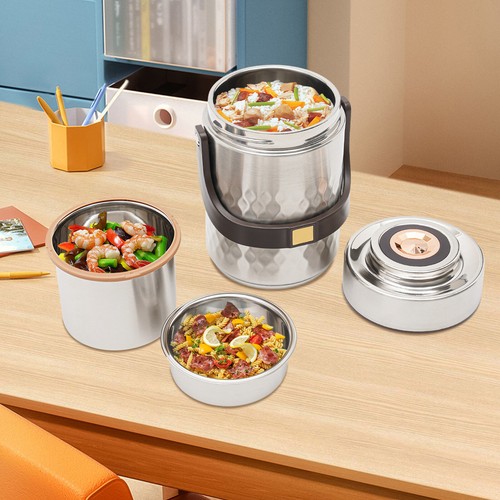 Unbranded 3-Tier Sealed Stackable Food Thermos Silver Insulated Thermal Lunch Box