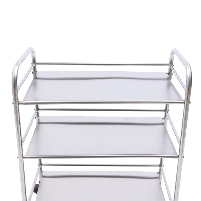 >Utility Cart is made of stainless steel. So that it is anti-corrosion and easy to clean .Don't worry about rust.