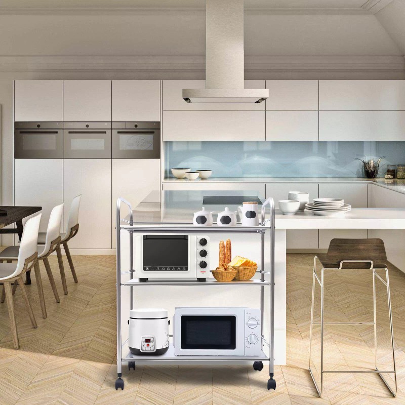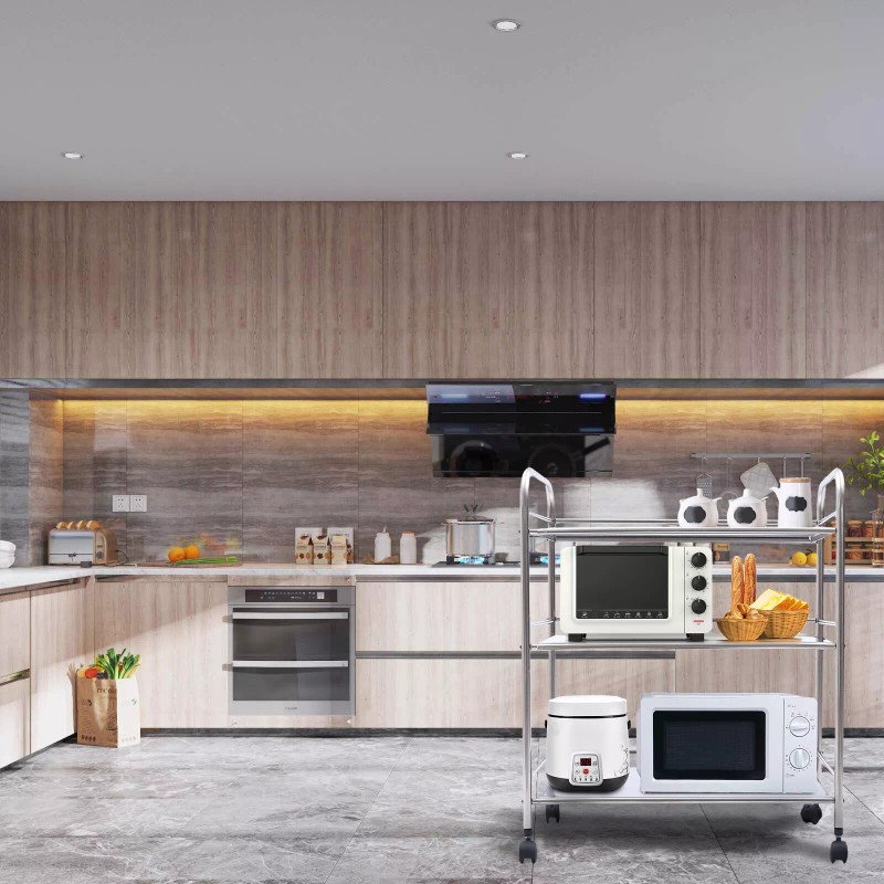 Multi-purpose storage: This 3-tier stainless steel storage rack can be used in kitchens, bathrooms, offices, warehouses, etc.it can help you use more storage space.