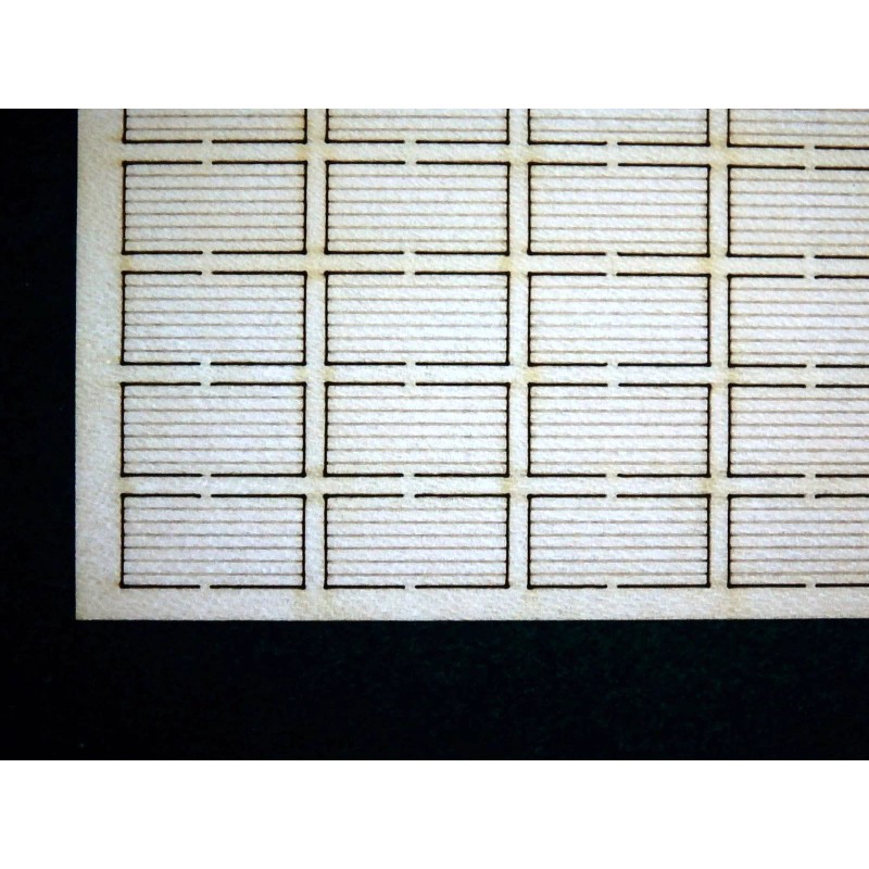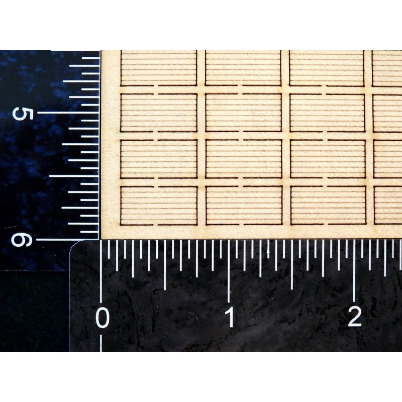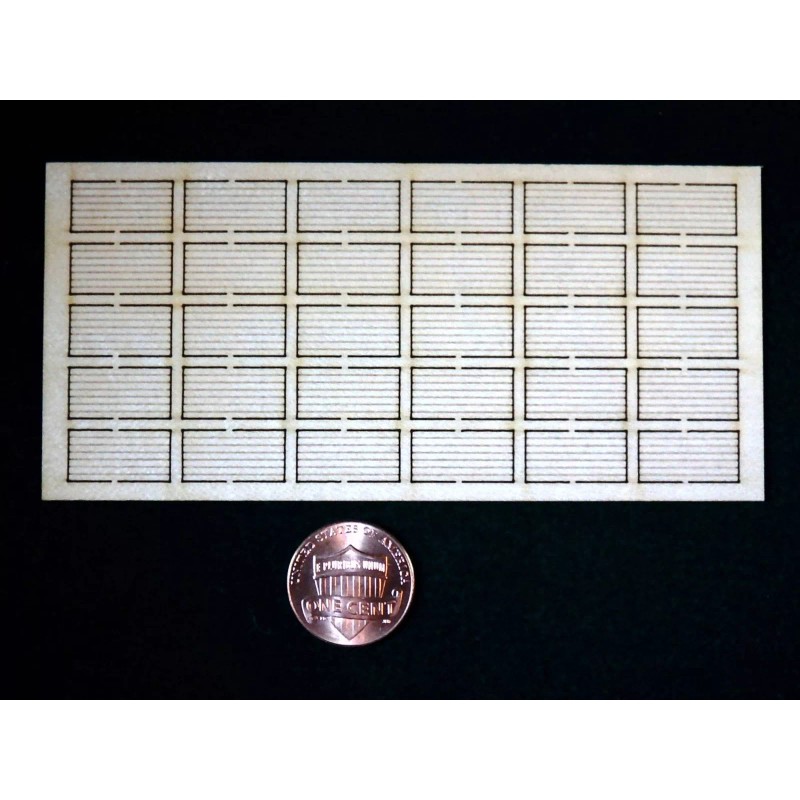 Offered are 30 sheets of T1-11 plywood measuring 4ft x 8ft N Scale. These are made from 0.020” thick hardwood. Like the Life-Size T1-11, these are grooved on one side only with the grooves spaced at 8” on center in N Scale. They can be used on construction sites, roof sheeting, delivery truck loads, boarded over windows or to fulfill your very own unique idea. Simple to Use. Simple to remove from flashing with a sharp blade. Laser cut precision for true-scale accuracy.