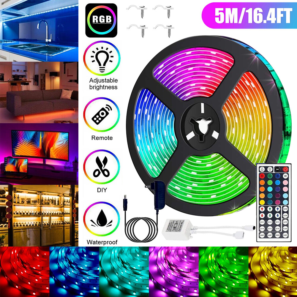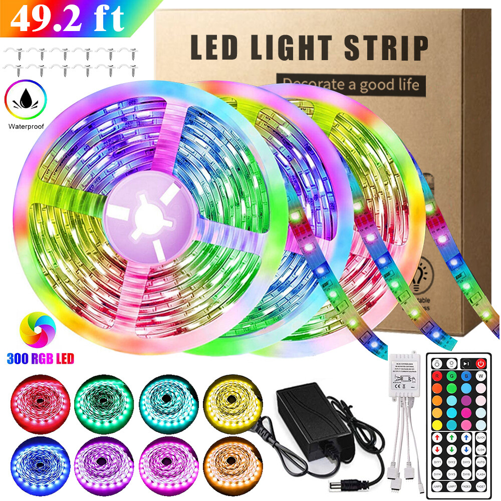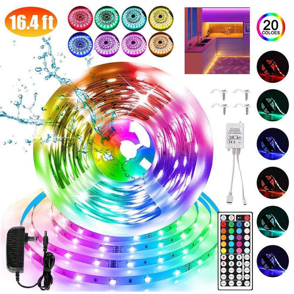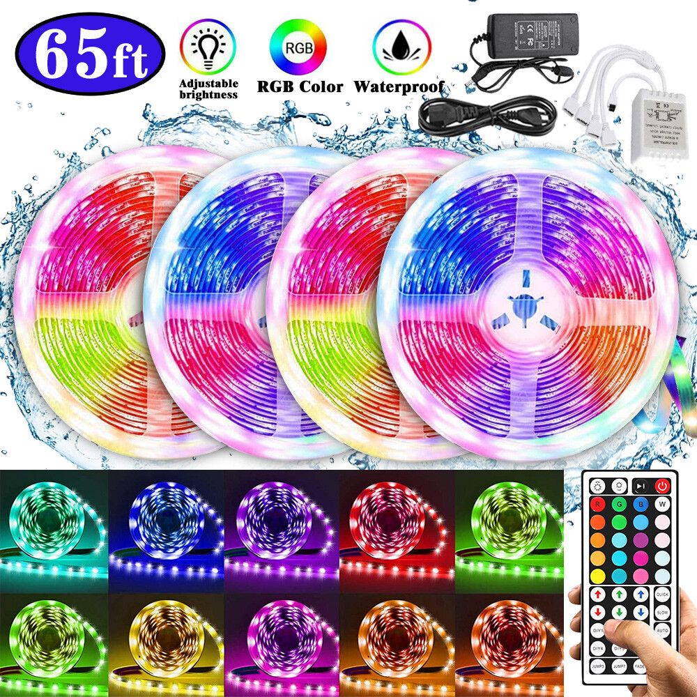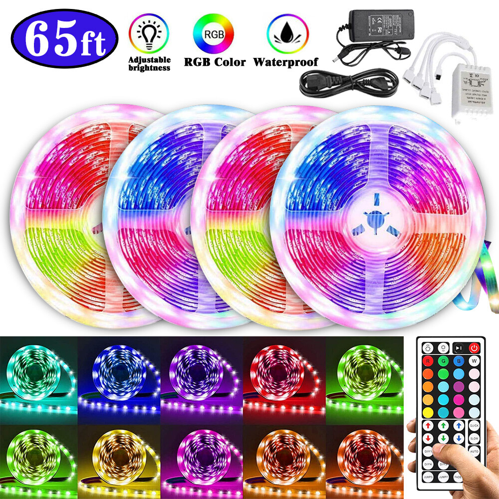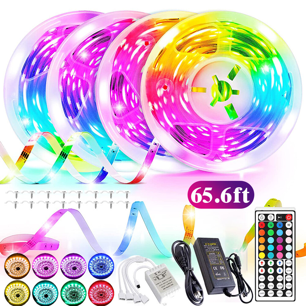 | 32.8FT Led Strip Lights Music Sync RGB Lights Strip, SMD5050 Color Changing with Bluetooth Controller + 44 Key Remote Control LED Lights for Bedroom, Bar, Party, Home Decoration Please note that 20m set is two box of 10m set. Bluetooth Lights Function: APP Control, Music Sync, Mic Mode,etc WIFI Lights Function: APP Control, Music Sync, Mic Mode, Google Home Alexa Assistant control,etc. Specifications: 1. Model Number: 5050 RGB Led Strip 2. Led Strip Size: L (5m ) x W (0.8cm) 3. Emit Color: RGB Led Strip 5050(Has white light ) 4. Working Voltage: DC 12V 5. LED Quantity: 5M/Roll 6. Power Supply: DC 12V 2A/3A/5A ( US) 7. Level:( IP65-waterproof ) 8. Working Temperature: -20°C-60°C 9. Lifetime: 50,000+ hours