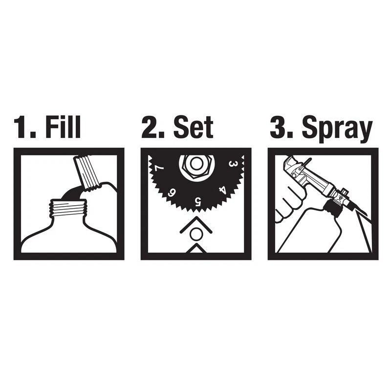 Tank capacity: 32-ounce, chemical-resistant, poly concentrate tank – sprays up to 320 gallons