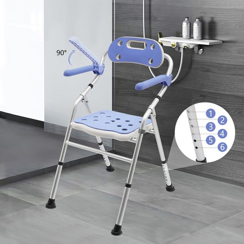Unbranded 330lbs Folding Shower Chair Bench Bath Seats with Back & Arms Height Adjustable
