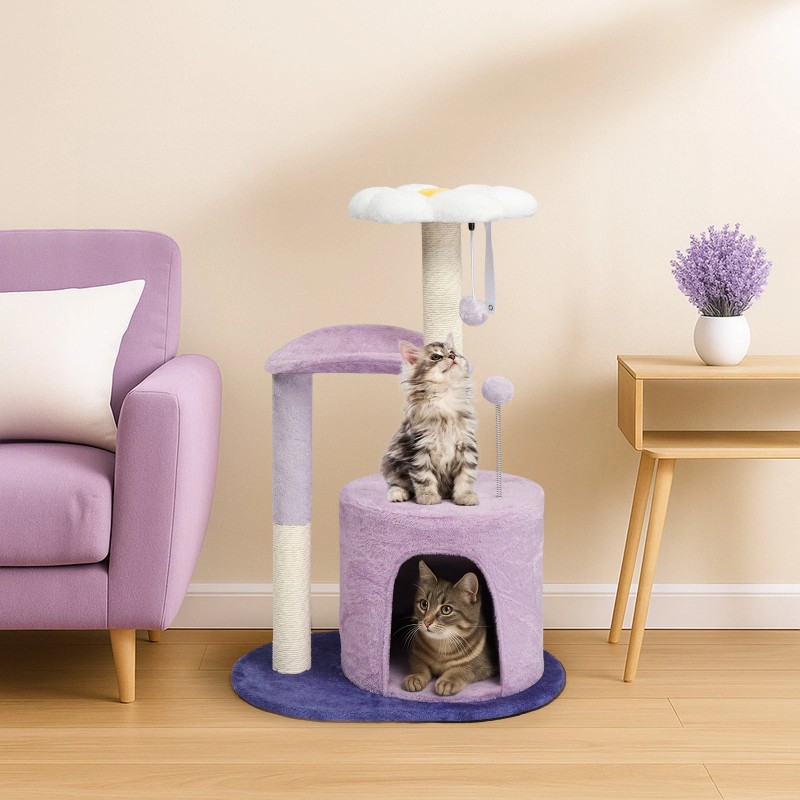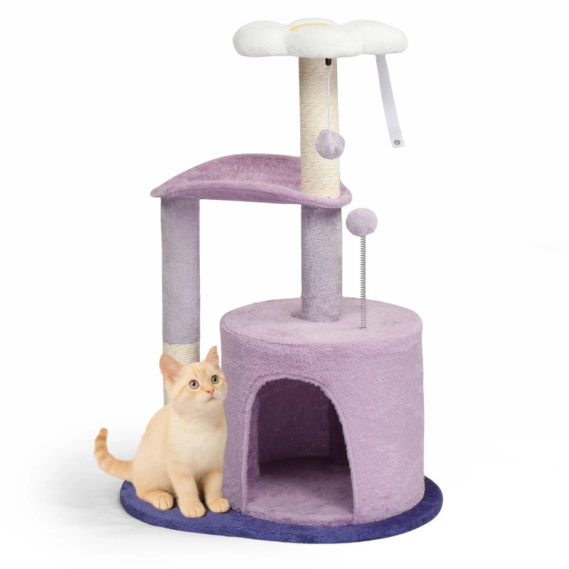 33inch Purple Cat Tree Tower Indoor with Cat Scratching Post Condo Toy Balls