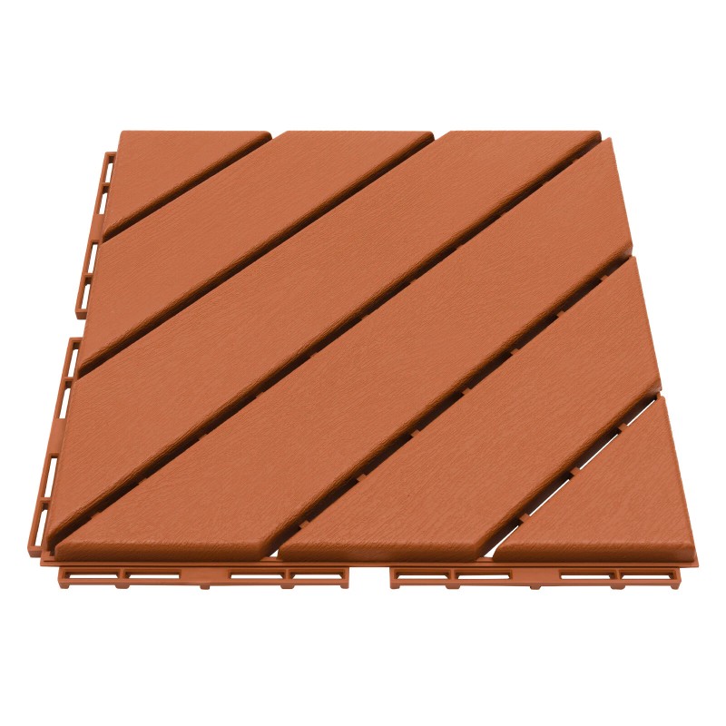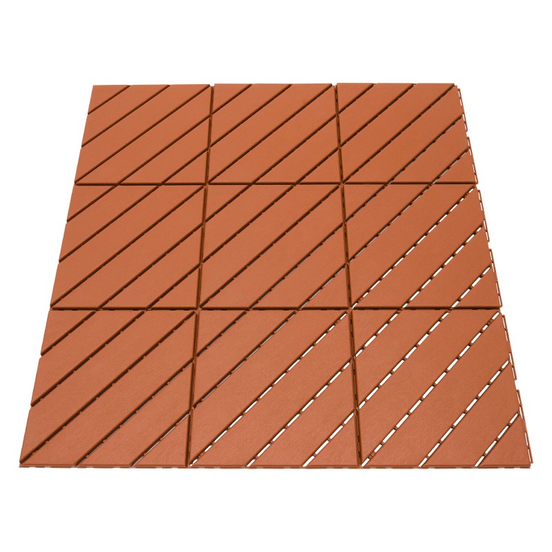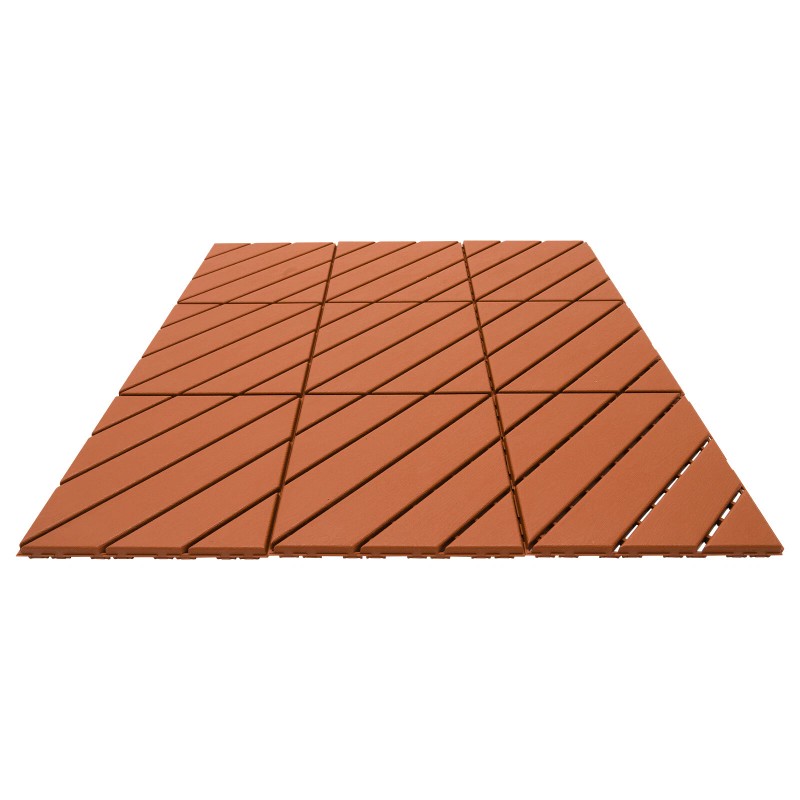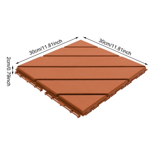 Specification Material: PP Color: Brown Style: Modern Shape: Square Pattern: Trapezoids and Triangle Process: Injection Molding Mount Type: Floor Mount Number of Pieces: 36 Assembly Required: Yes Installation Method: ‎Interlocking Total Load-bearing Capacity: About 3T/ 6613.87 lbs Temperature Range: -30-80℃/-22-176℉ Total Covering Area: 3.24m²/34.87ft² Each Product Size: 30*30*2cm/12*12*0.79in Package Size: 32*39*63cm/12.6*15.35*24.8in Net Weight: 10.5kg/23.15 1bs Gross Weight: 11kg/24.25 1bs Package Included 36Pcs* Interlocking Deck Tiles