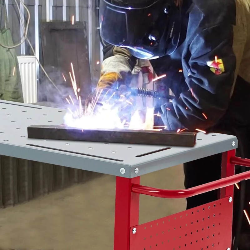 This metal workbench is suitable for welding and sawing works such as hammering, staining, drilling, welding, cutting, etc. Its versatility makes it a valuable addition to any workshop.