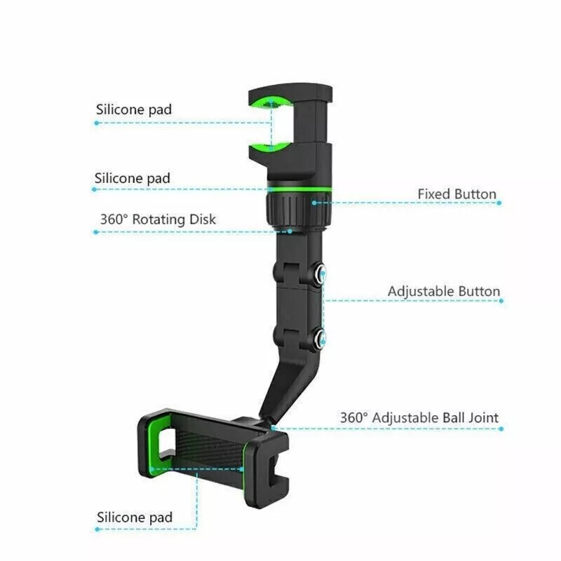 • Adjustable viewing angle, 360-degree rotating design, provide a good view when driving on the road, will not block the line of sight, easy to adjust the control angle, the design of the rear-view mirror mobile phone holder is closer to your needs.