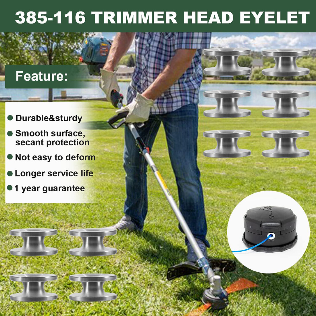 Easy Installation The trimmer head eyelet sleeve can be easily installed manually and quickly plugged into the weedeater head, making your weeding work easier.