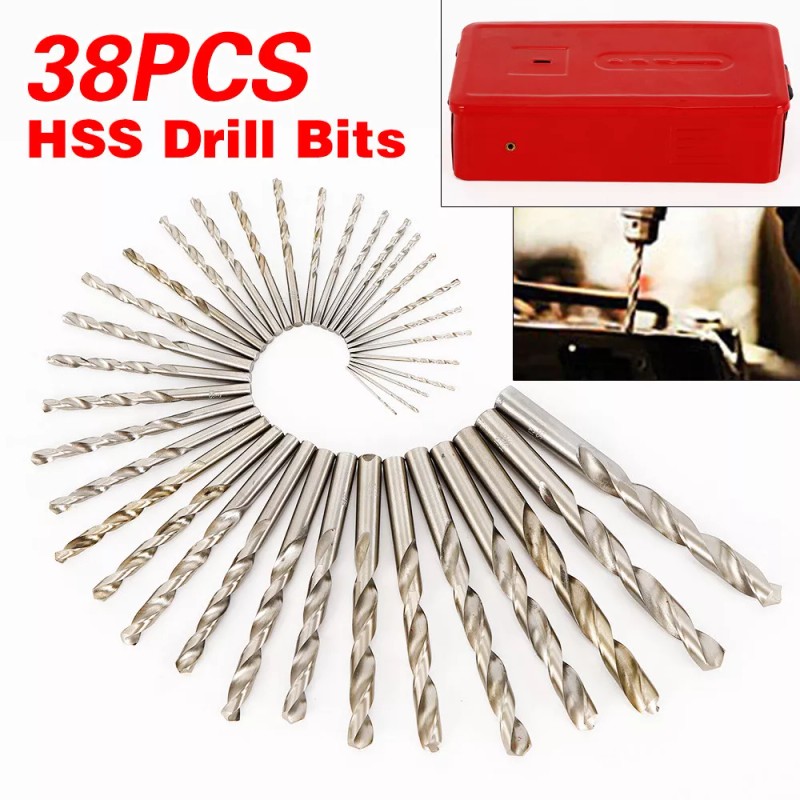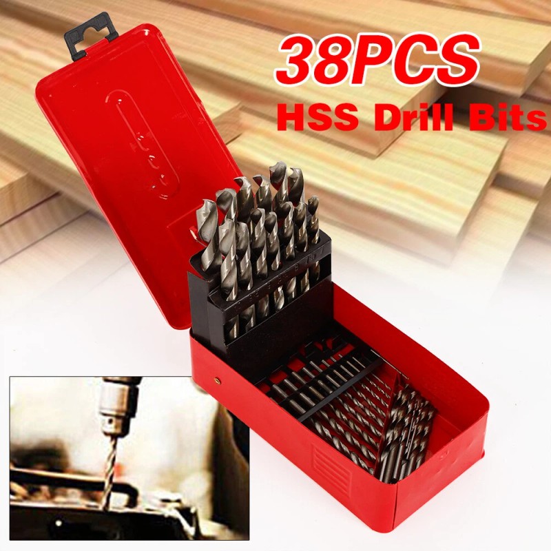 38Pcs Metric Drill Bit Set HSS Iron Twist Steel Twist Drill Bit Kit High Speed
