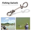 Feature: 1. Made of stainless steel material, corrosion prevention, anti-rust, long service life. Specification: Features: Made of stainless steel material, corrosion prevention, anti-rust, long service life. Simple design for fast and quick connection. Can be applied for most kinds of fishing. 50Pcs come in a package, meeting your long time use needs. Flexible and not easy to wind around the fishing line. Specification: Condition: Brand New Material: Stainless Steel Color: Shown as pictures Type Options: 1#, 2#, 3#, 4# Length: Approx. 14mm / 0.6in(1#), 16.8mm / 0.7in(2#), 19.4mm / 0.8in(3#), 24.6mm / 1.0in(4#) Quantity: 50Pcs Weight: Approx. 5 - 32g Packing List: 1 x Pack of 50Pcs Fishing Swivels