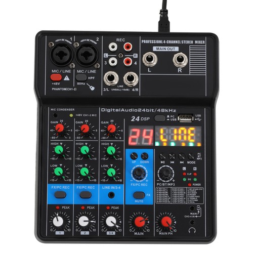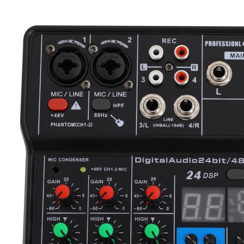 24-Bit/48khz Audio Mixer Versatile 4-Channel Sound Mixer 48v Professional Mixer