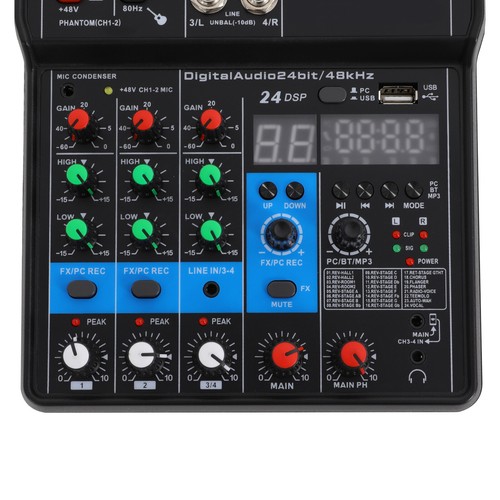 Unbranded 4-Channel Professional Audio Mixer Black with Bluetooth USB & DSP Effects 48V US