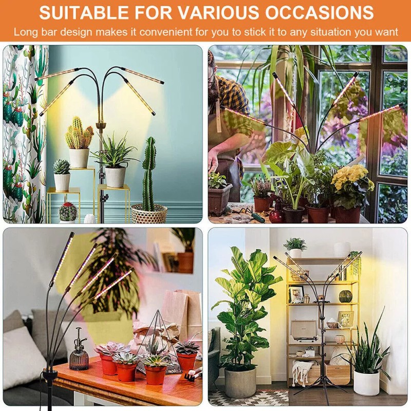 Unbranded 4 Heads LED Plant Grow Light with Stand Timer Remote Full Spectrum Growing Lamp